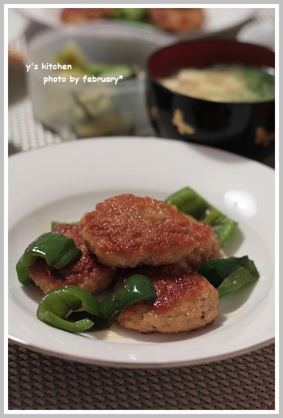 両面焼き色をつけて、ピーマンをいれてさっと炒めて、
