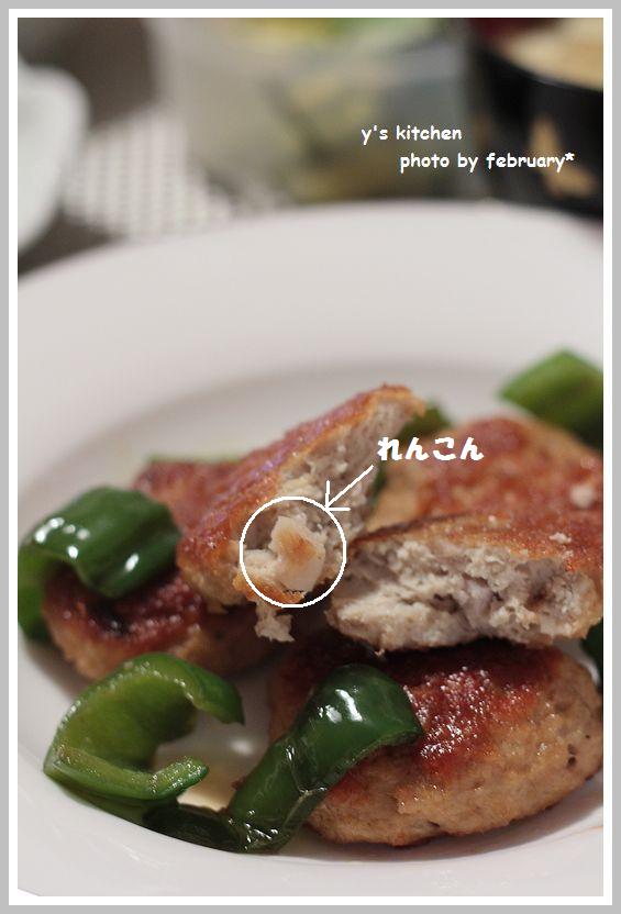 鶏ひき肉450gをボウルに入れて、塩コショウ、れんこん、卵1個、パン粉 を 入れて