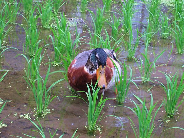 目の前の田んぼには、昨年は アヒル がいたのですが、今年は2羽の 鴨 が