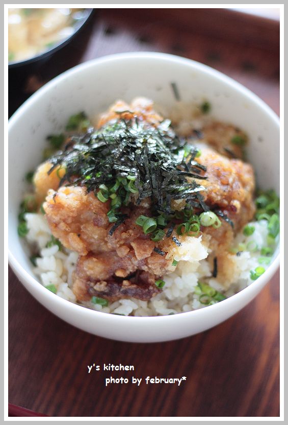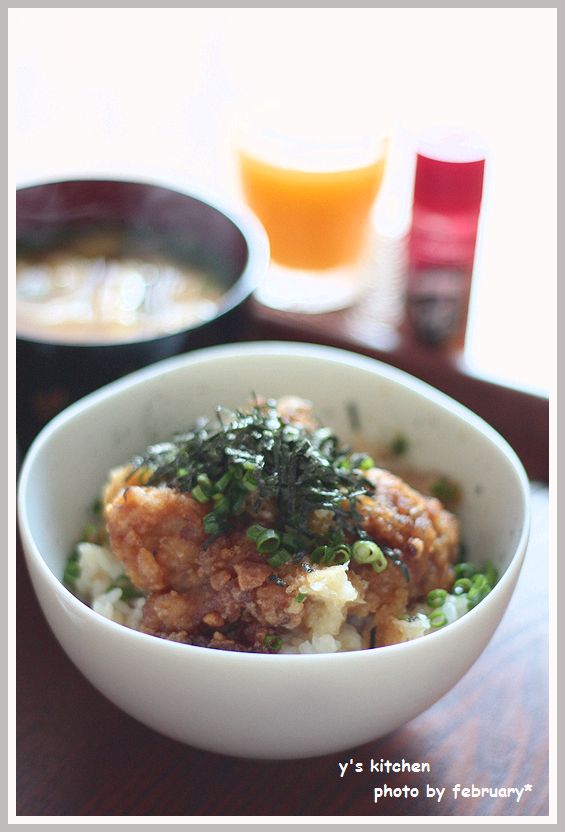 から揚げ丼、色々バリエーションがあって、サラダ丼風にしてもいいんだけど、