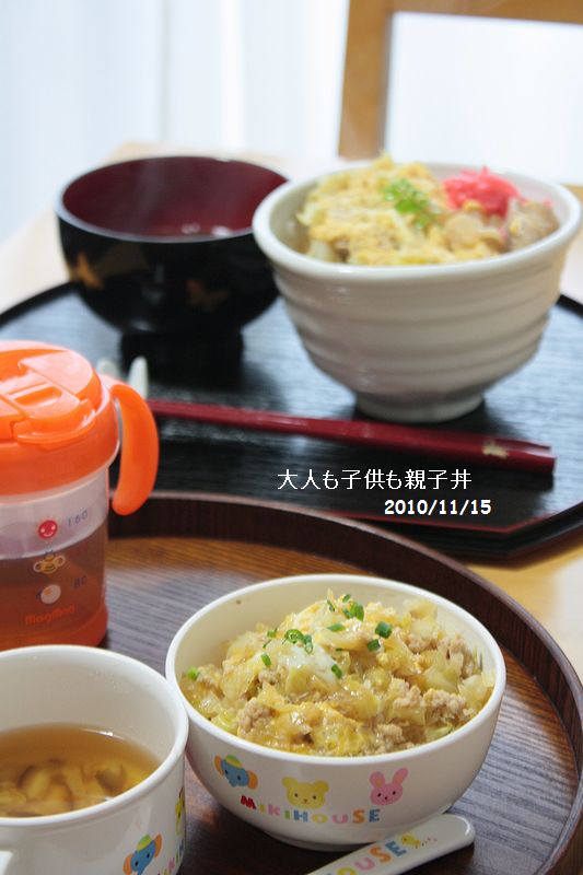 親子丼、子供は鶏ひき肉だよー。
