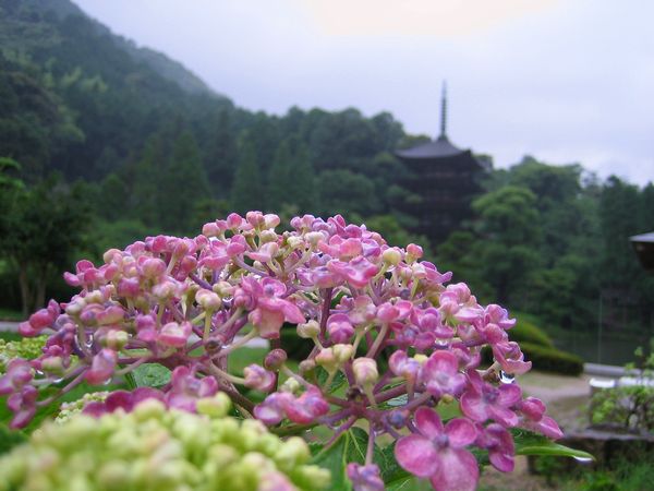 さて、先週末、そぼふる雨の中、瑠璃光寺五重塔に咲いているあじさいを撮影してきました。