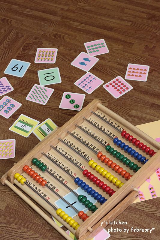 数字の裏に野菜や果物や花などの絵が書いてあり、物の名前を覚えるのにもいいし、