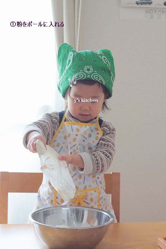 「パンを焼いた」 と いっても、ホットケーキミックスを使って混ぜるだけ
