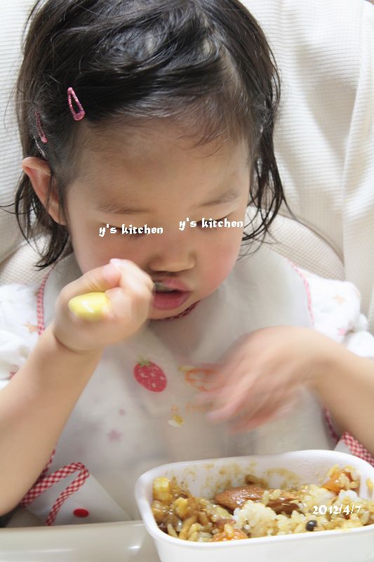 それでもすっごく喜んでいて、 「○○ (←自分の名前)、カレー作ったよ!」