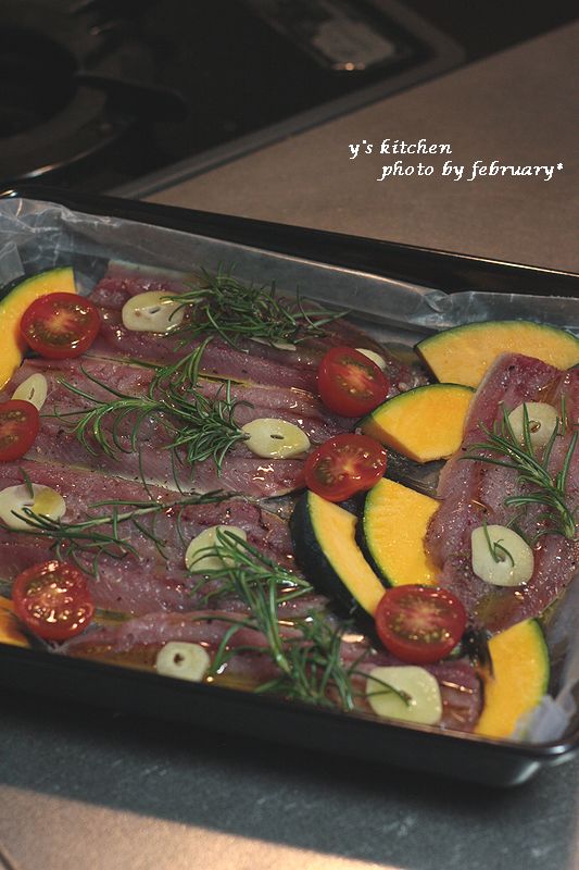 オリーブオイルを回しかけオーブンで焼く。