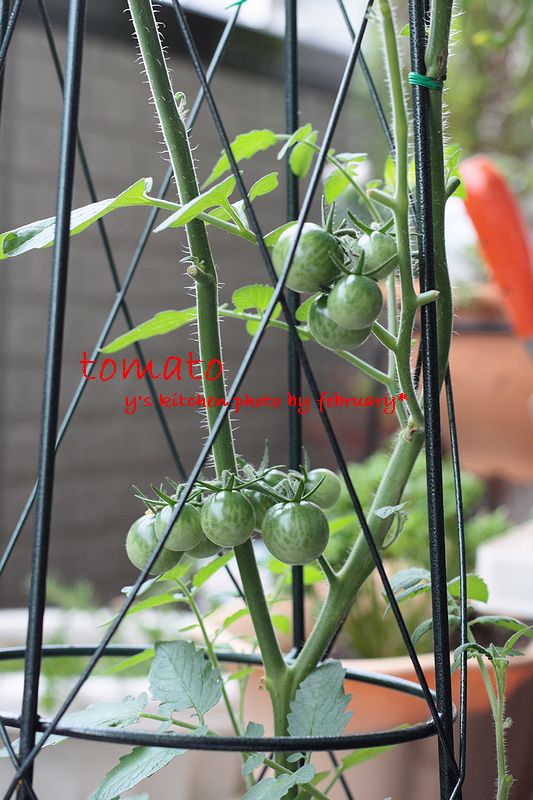 娘がトマトをむしり取ろうとするので、目が離せません。