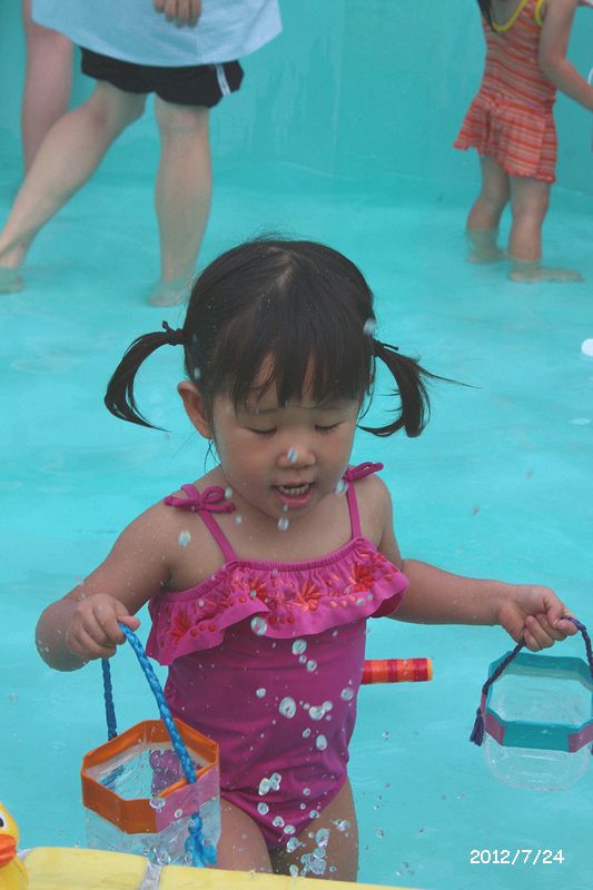 お風呂で泳ぐ練習をしているので (笑)、 バタ足は得意中の得意!