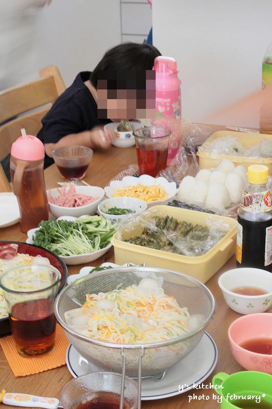 おそうめん、チヂミ、おにぎりのプチパーティー。