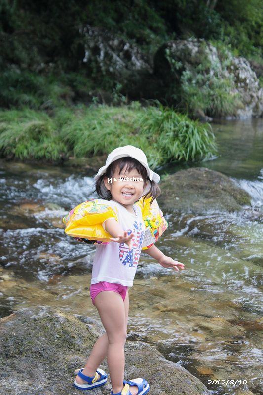 初めて使ったので怖いらしく、 「おかあさん、一緒に川に入ろう」 と