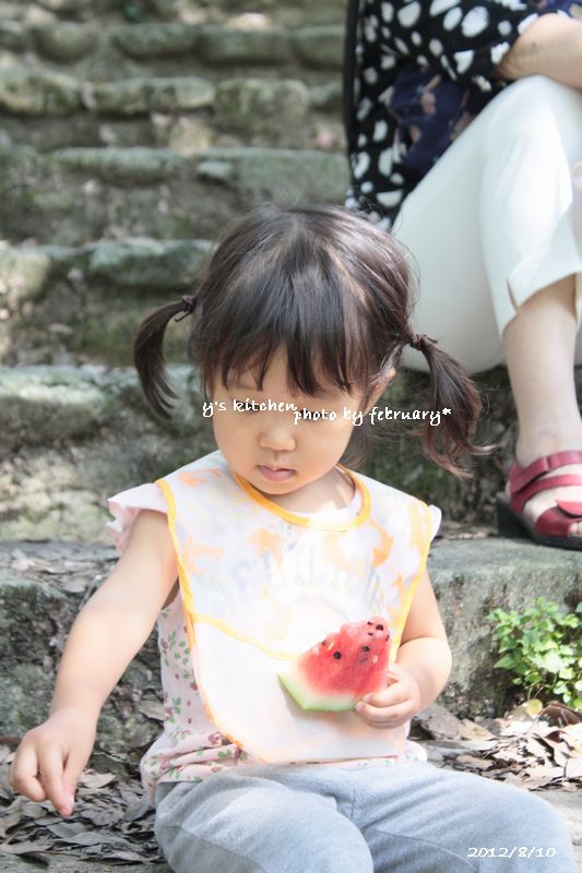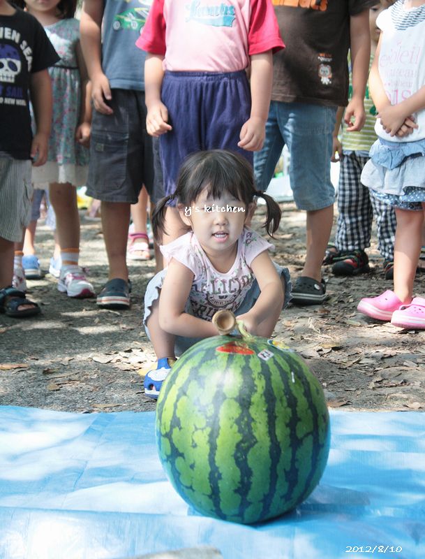 娘は意味がわからないのか、スイカの前に陣取り、横はいり。