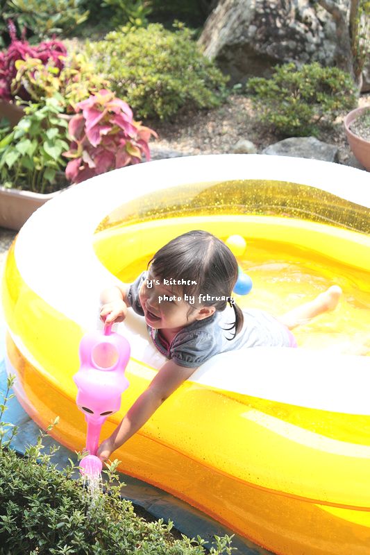 おばあちゃん、みんなを楽しませるのが得意なのね~。プールもジャンボサイズだし、ご主人の実家でたっぷり夏を満喫したいわ~。