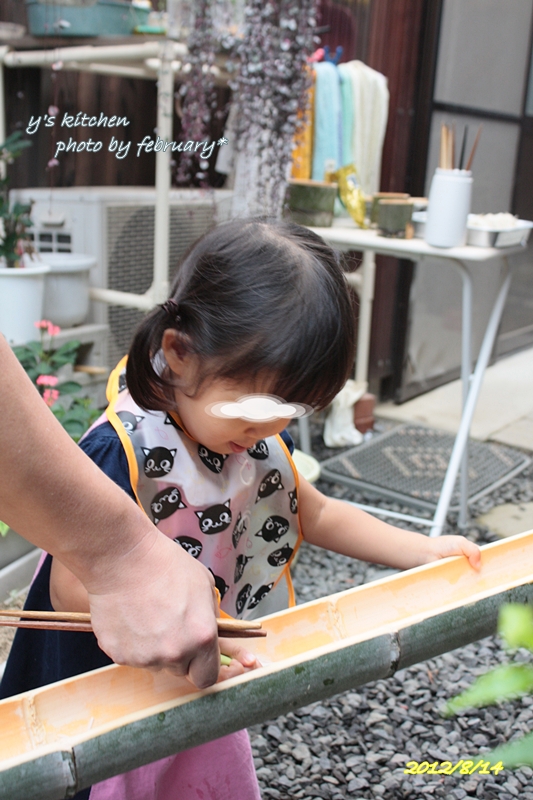私も楽しんだ そうめん流し。(流しそうめん?)